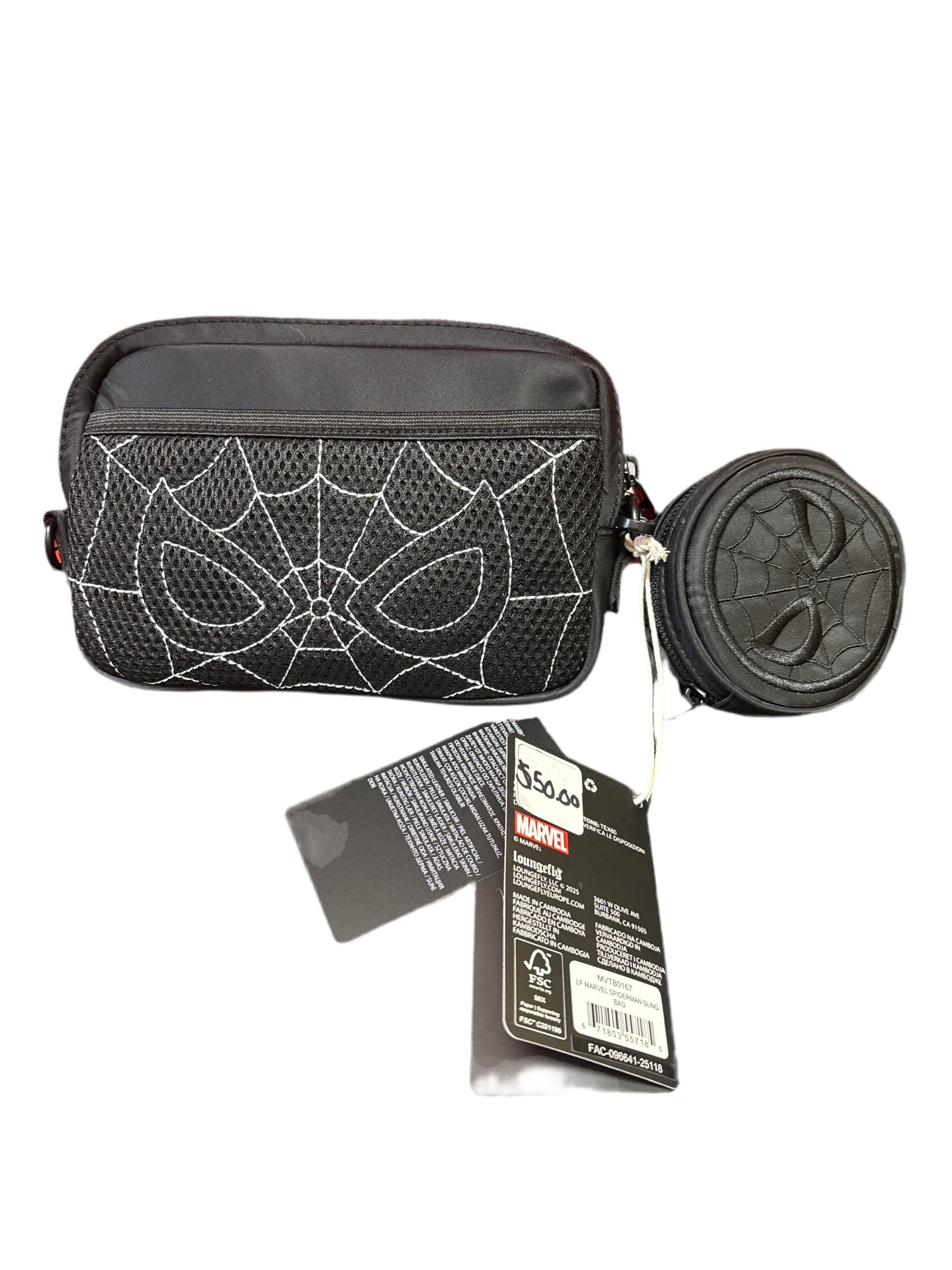 Spider-Man Black Out Sling Bag Loungefly Spider-Man Crossbody Bags